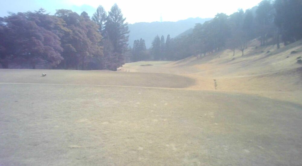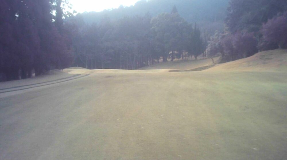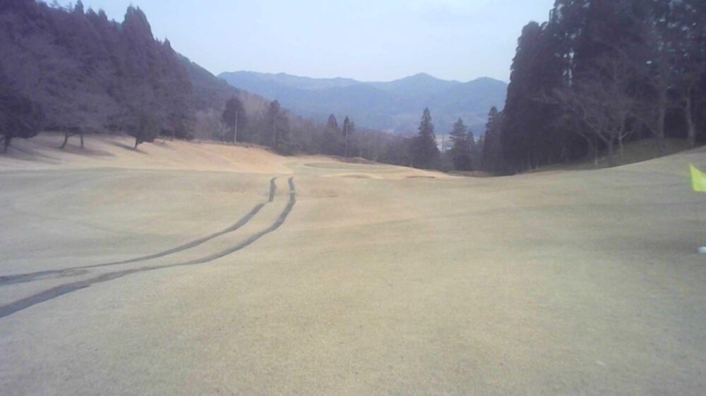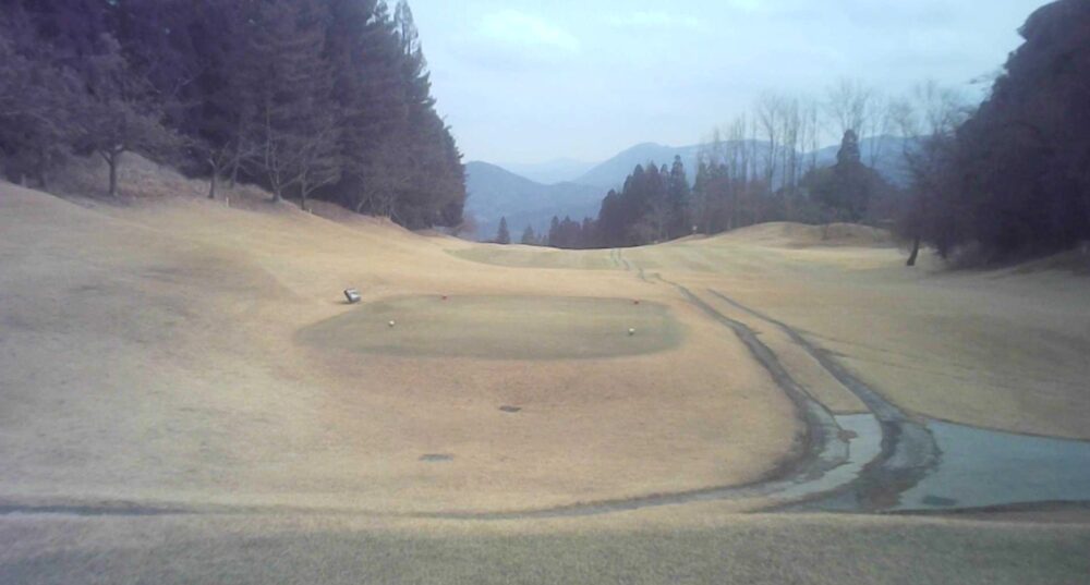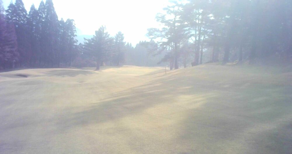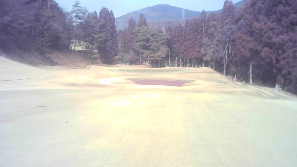 TEE前から左側に杉並木があるためプレッシャーのあるティーショットはセンター吹き流し右側狙いで豪快にフルショット、左OB注意セカンドは打ち上げの為、1番手大きめのクラブでグリーンセンター狙い。奥から下りなので注意。