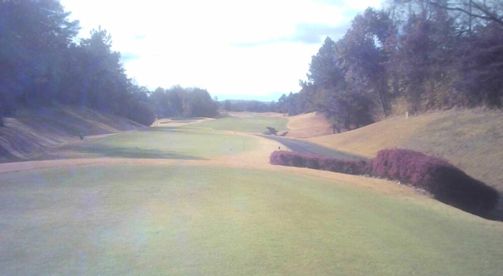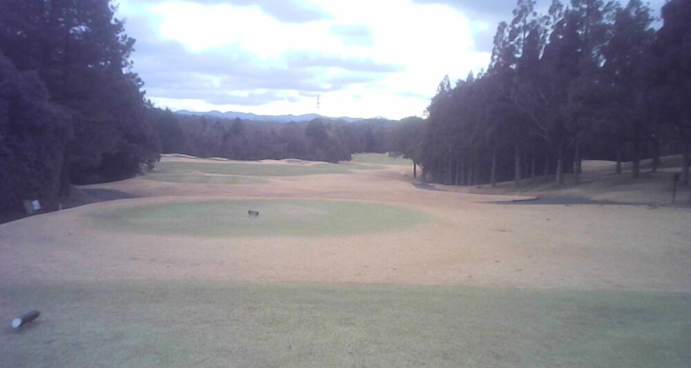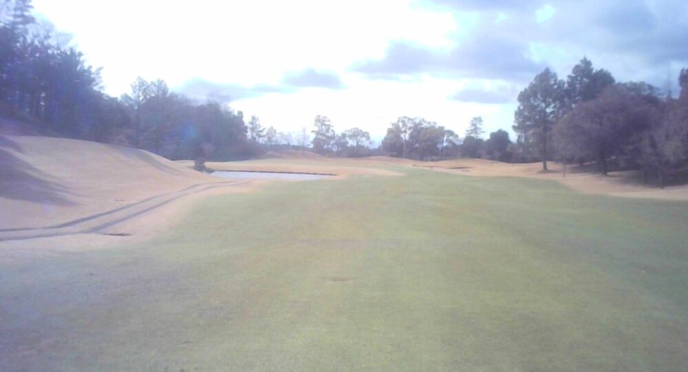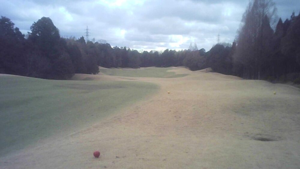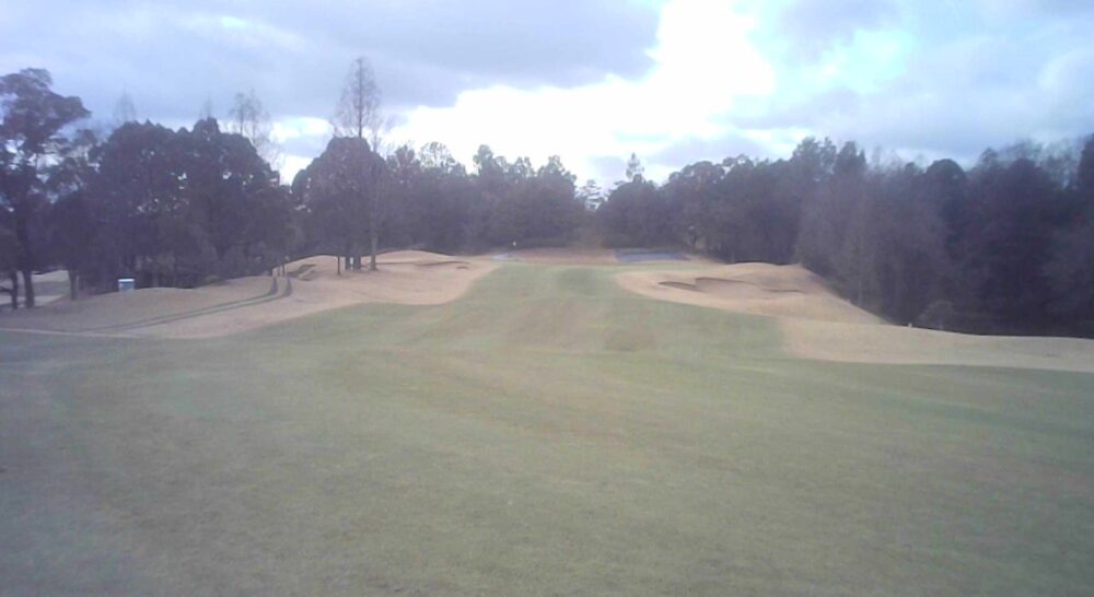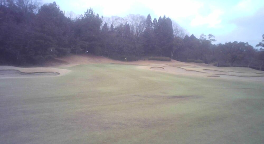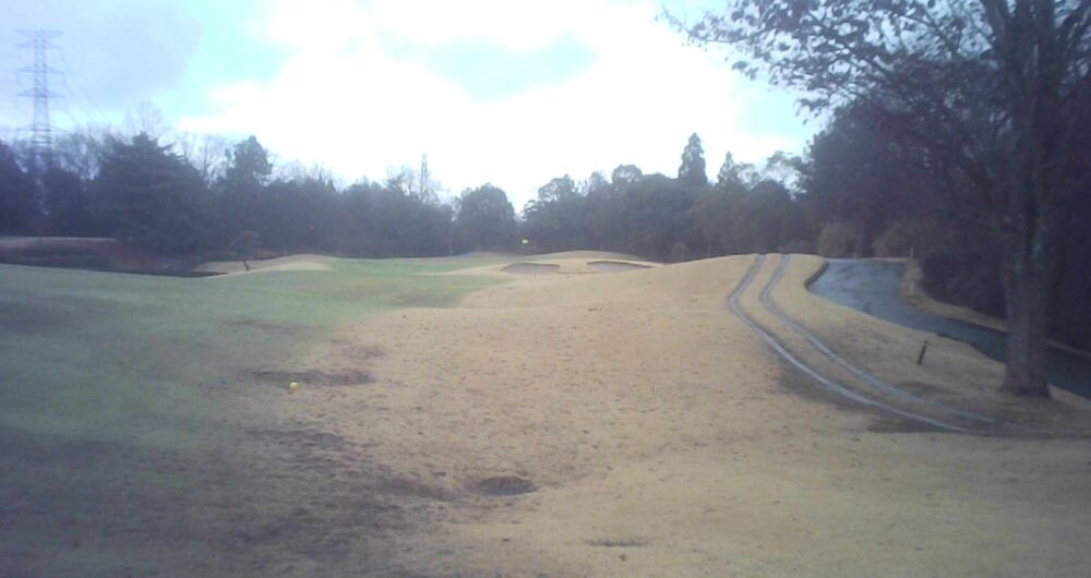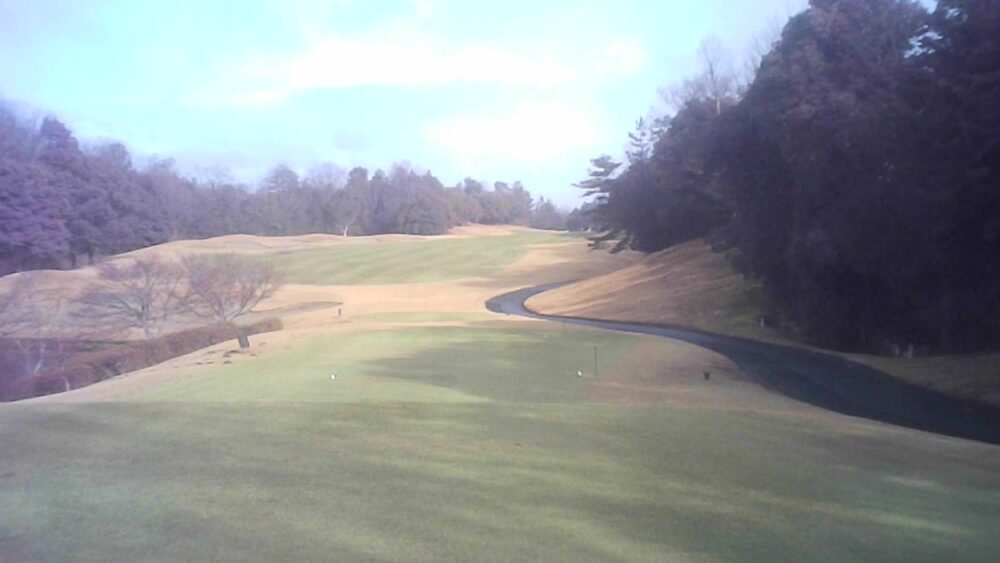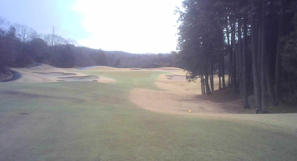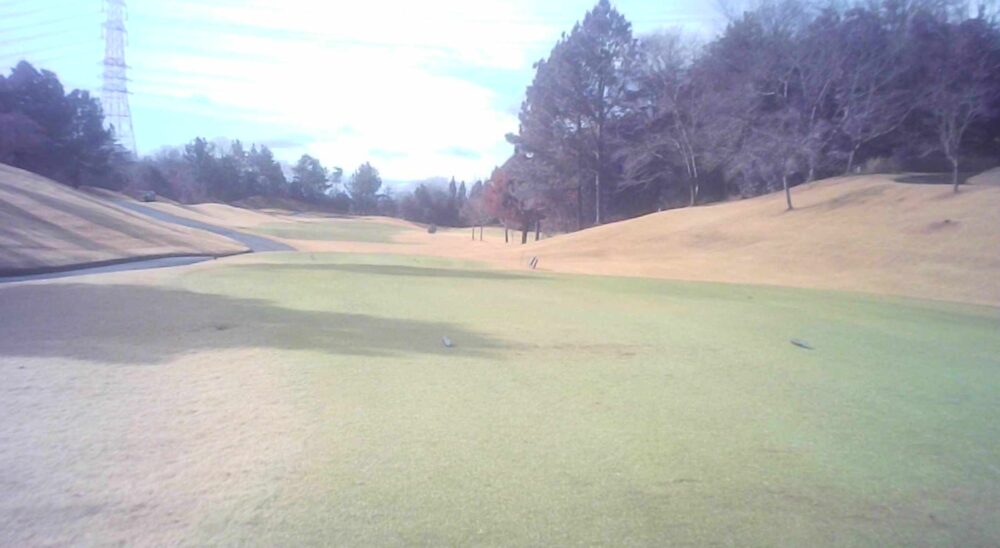 一見すると真っ直ぐでフラットなフェアウェイ。距離のあるこのミドルホールは綿密な攻略が必要。ティショットもセカンドも、距離が要求される。セカンド地点からはなだらかな上りで距離感も難しい。18ホールで一番大きく強烈な2段グリーンは乗る位置によっては大変難しい。