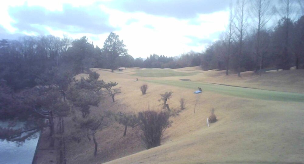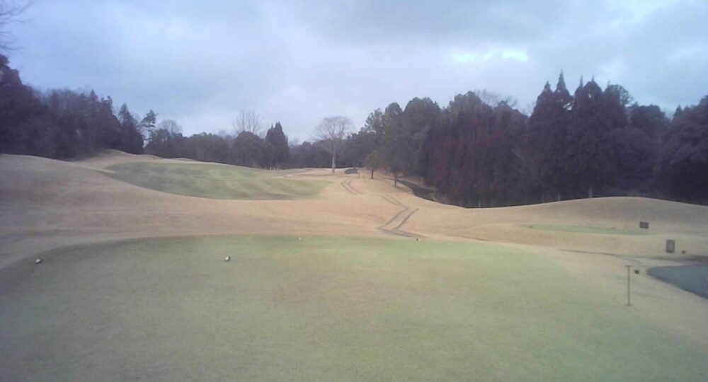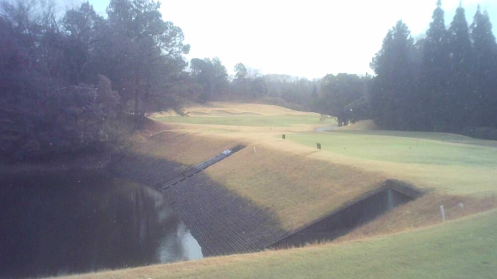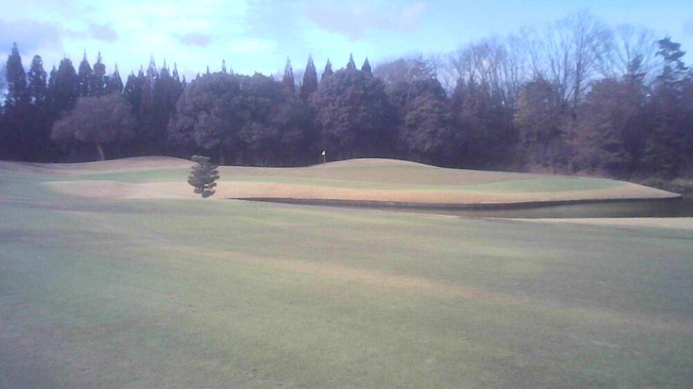 広いフェアウェイへ大胆に。思い切ったティショットができるミドルホール。手前の池は気にせず思い切って攻めたい。なだらかに打ち上げていくグリーンへ大きめのクラブで。大きな2段グリーンは乗る位置によってはかなり難しい。