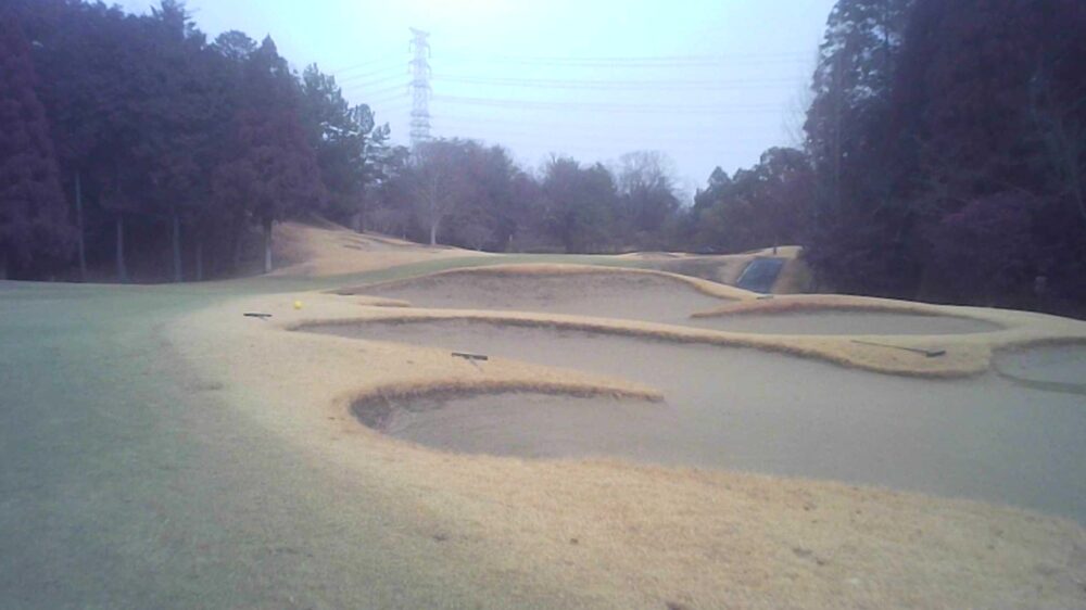 吹く風を計算したクラブ選択が必要で距離感が惑わされやすい。グリーンは2段グリーンでパッティングも難しい。