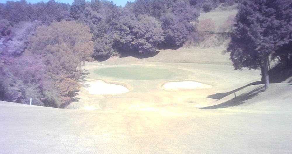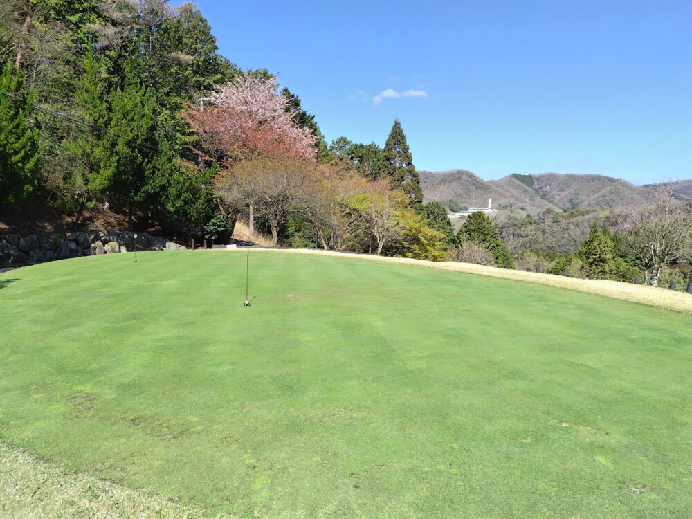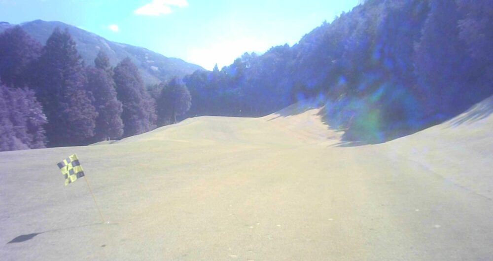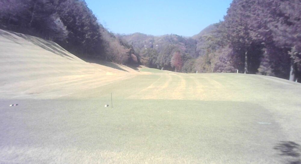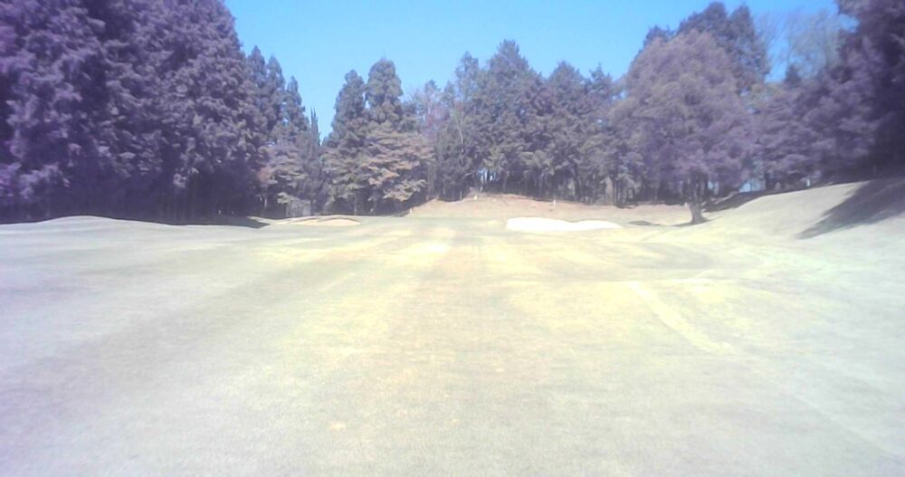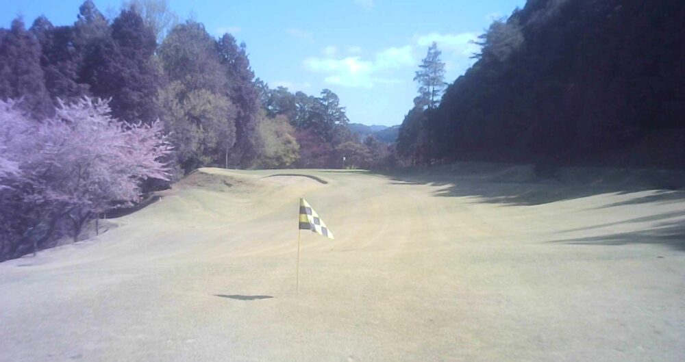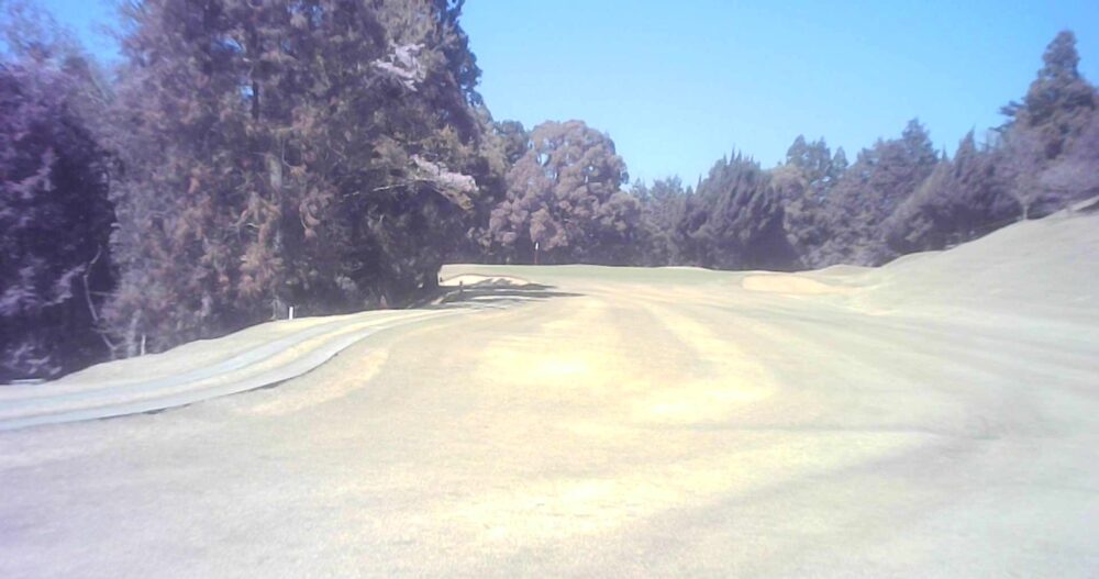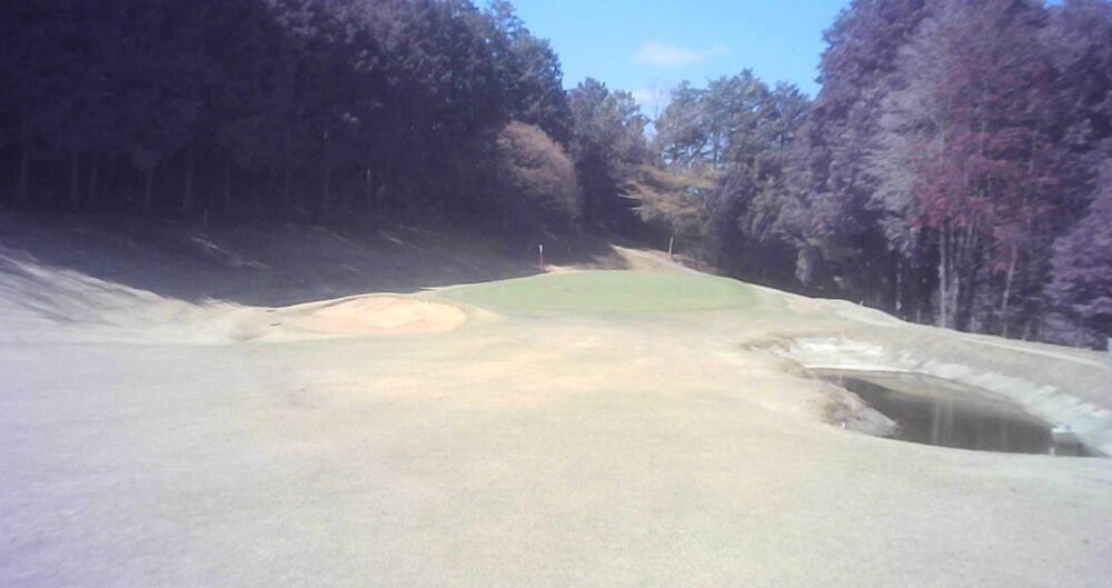 グリーン右は即OBになります。ピンが右に振られている時でも左山裾狙いに徹してもらうのが安全です。