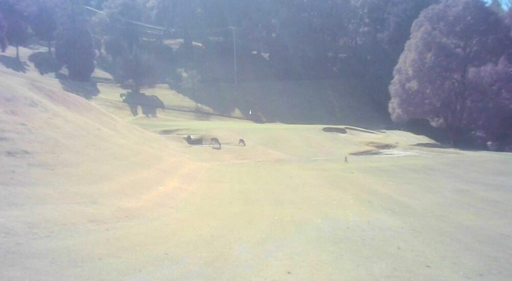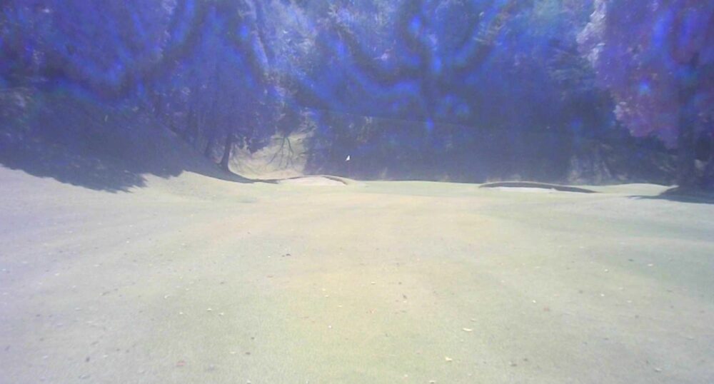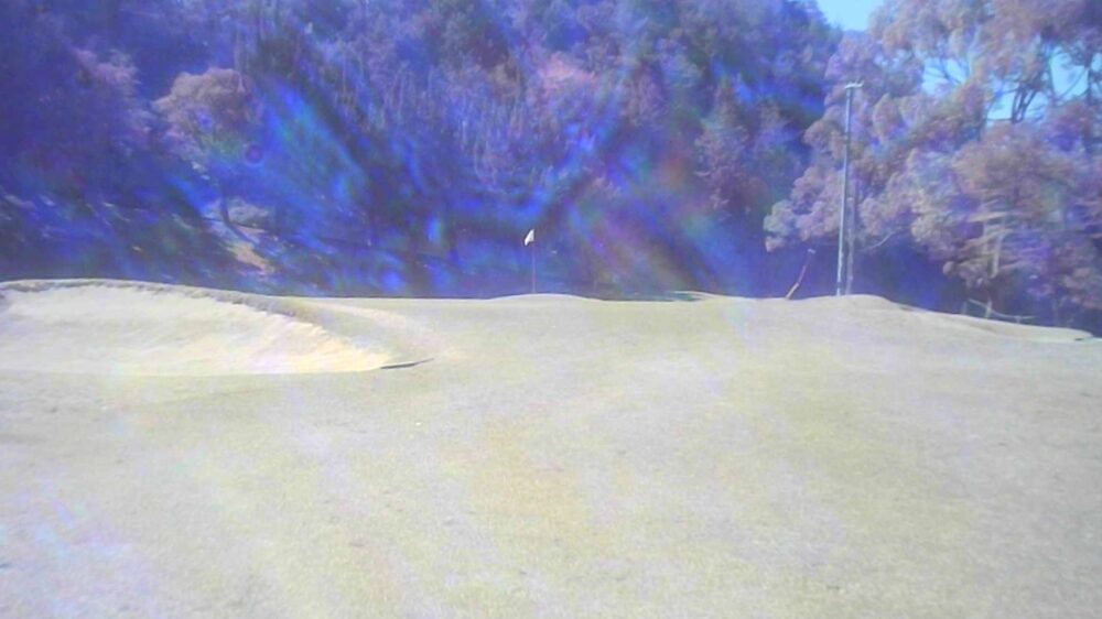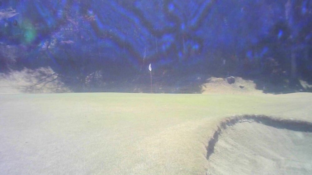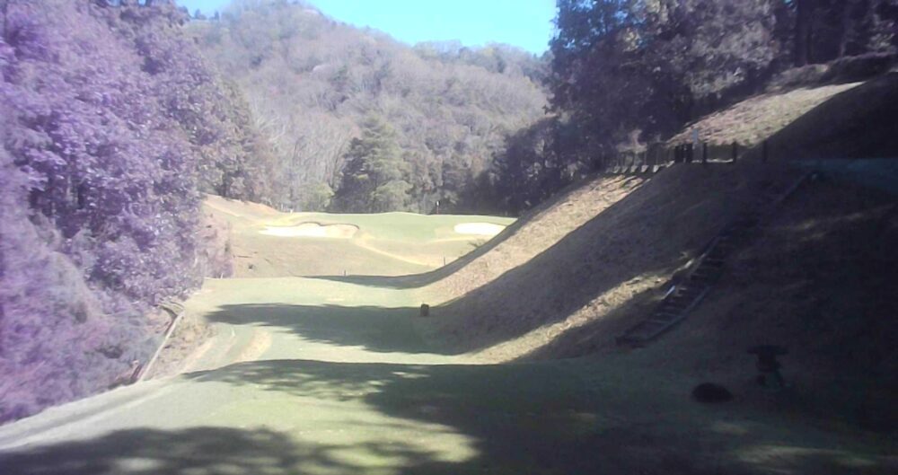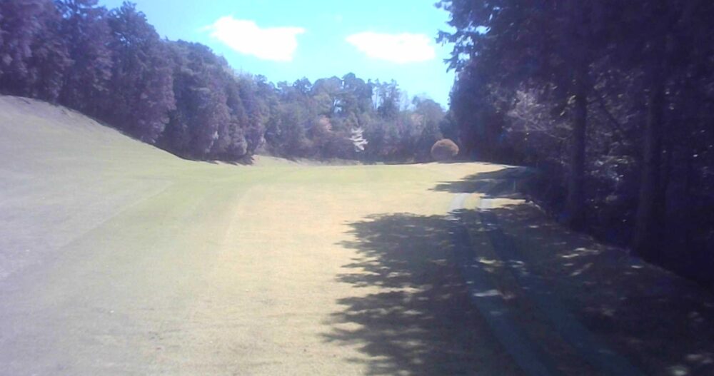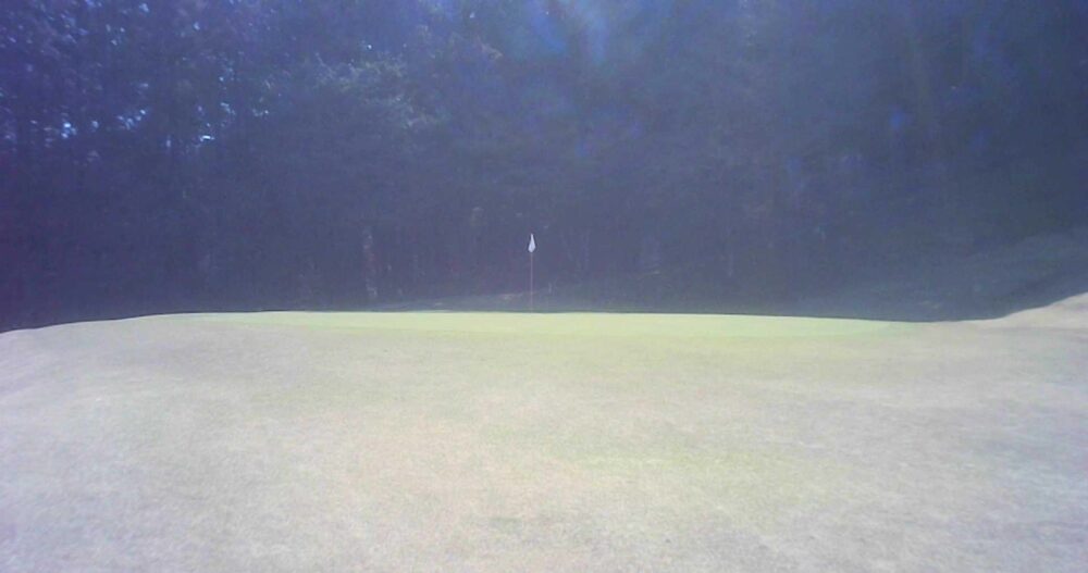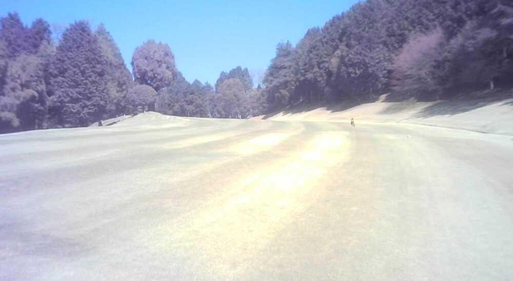 グリーン右は即OBになります。ピンが右に振られている時でも左山裾狙いに徹してもらうのが安全です。
