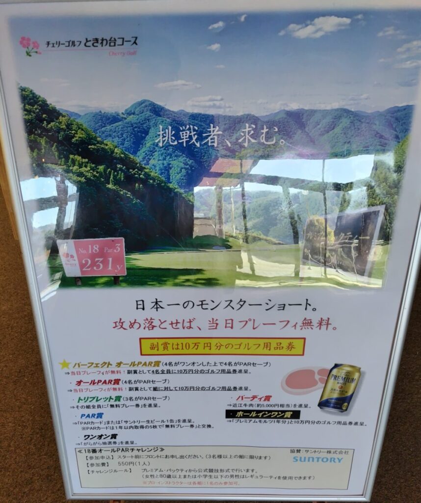 名物“スーパーダウンヒル”日本一とも言われる難易度の絶景ショートホールです。グリーンオーバーは池またはOBとなるので、ワンオンに拘らず、ややショートさせてアプローチ勝負がベストです。また、ティーで感じない風の影響を受けることがあります。☆名物のイベントあり。