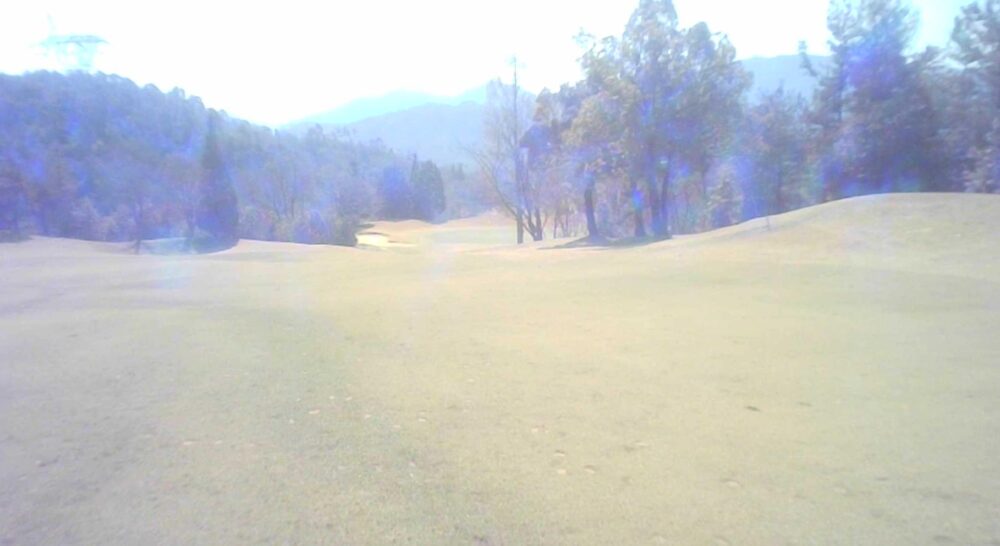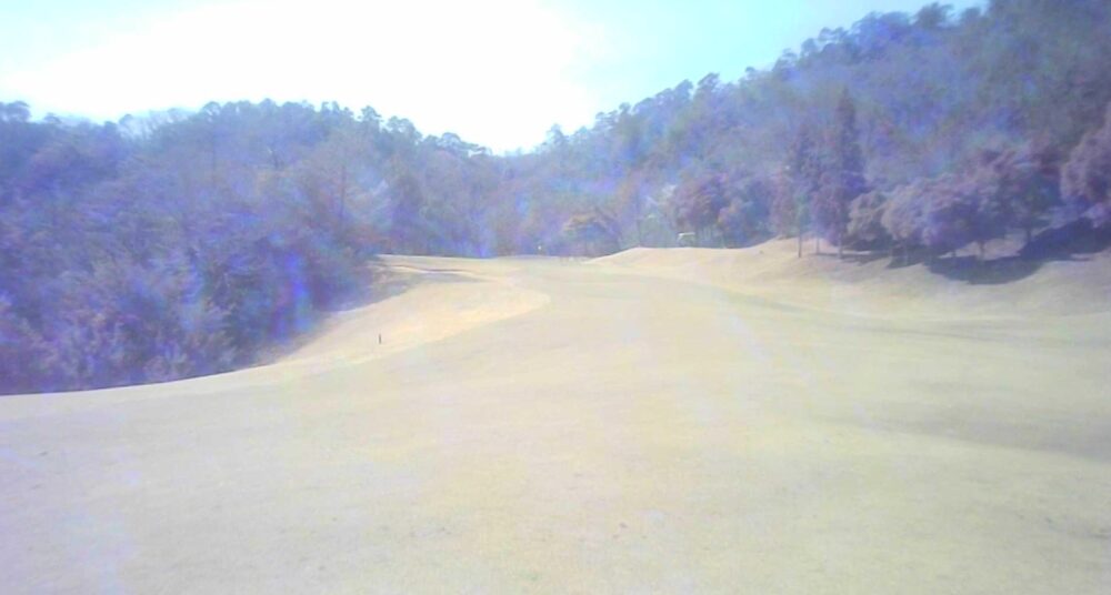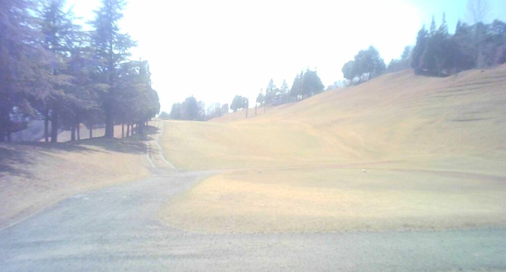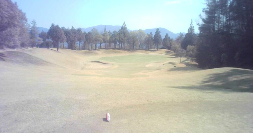 緊張感のあるロングホールです。2打地点から谷超えを狙うか、バンカー方向を狙うか、悩みどころ。☆ティショットから左バンカー手前に刻むか3番ホールOBラインの上を超えるか考えさせられます。
