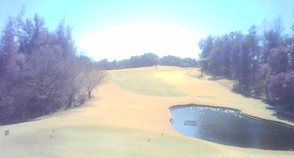 ティーグランドからグリーンはブラインドになっているものの、目標はあくまで正面に見えるバンカー狙い。但し、ティショット230~240ヤード地点には池があり、第2打がこのホールのカギを握ります。グリーンが手前から奥へ速いので、要注意。