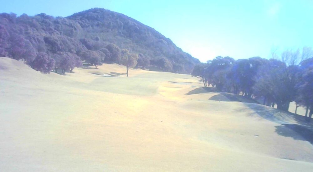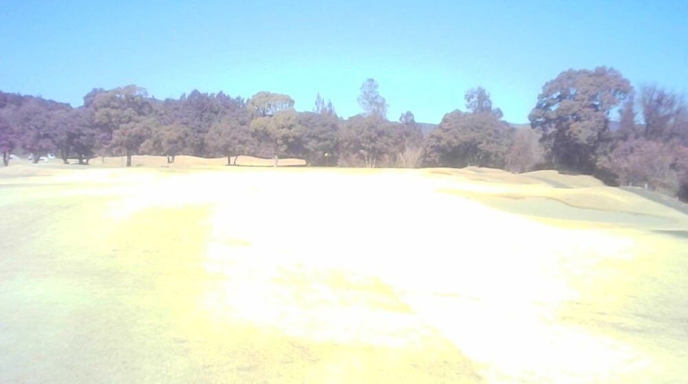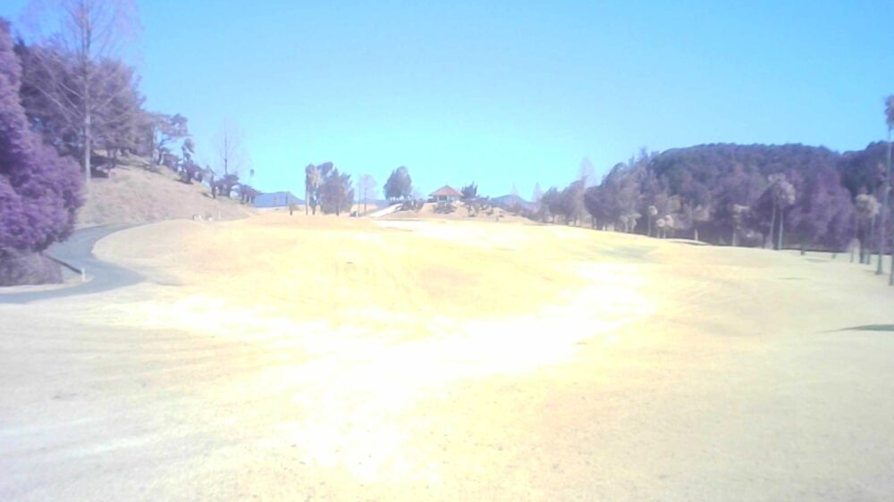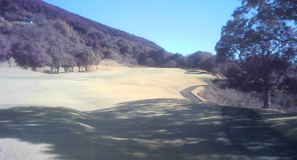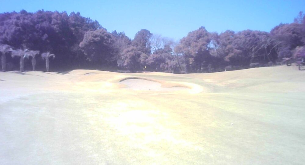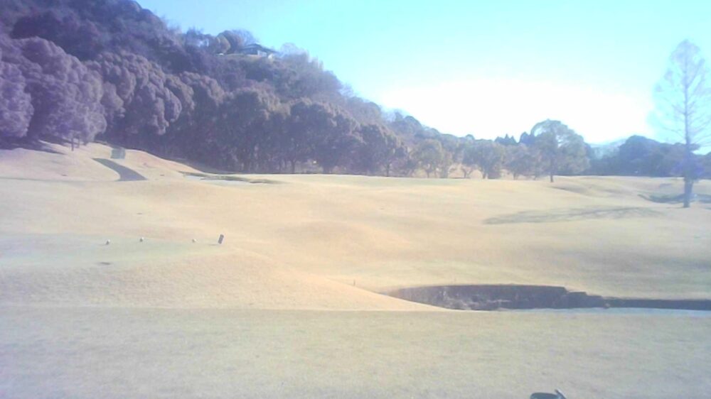 このホールは、茶店の横からの打ち下ろしのショート。風が微妙に変化するホールだけに、風の方向、クラブの選択には注意が必要です。