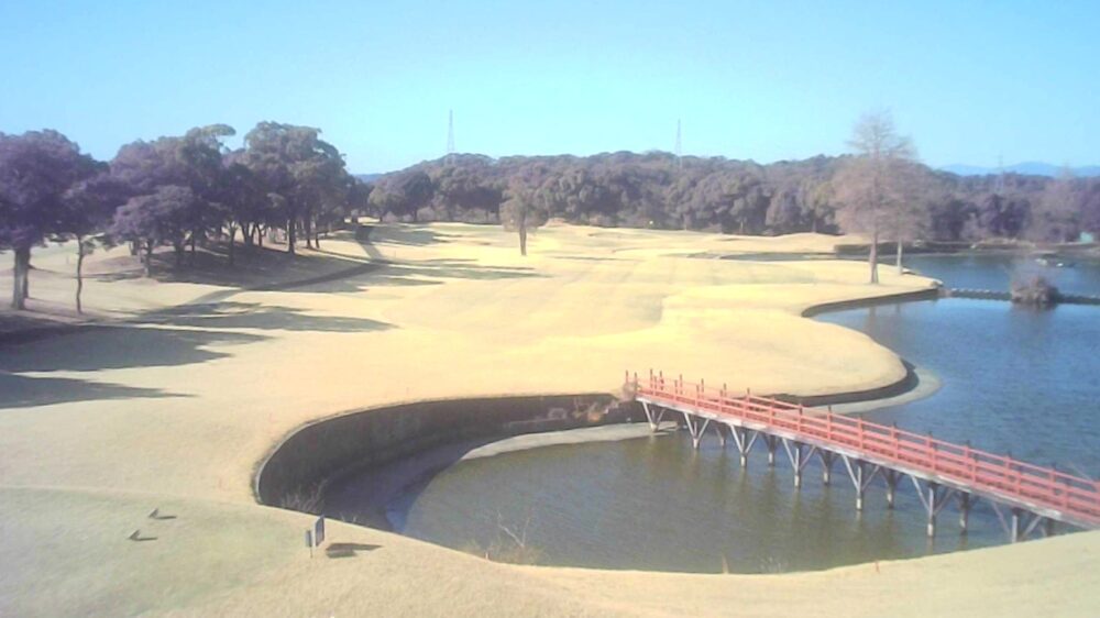 全18ホールのなかでもいちばん大きな池を持つミドルホール。青々と輝く上段の池には緑にひときわ映える「はりまや橋」、白い砂利石がまぶしい下段の池には、おらんくの池の魚”くじら”がぷかりと浮かぶ秀麗な名物コースです。距離が短いので、できればアイアンで刻んでフェアウェイに乗せ、ショートアイアンで打つのが攻略法です。