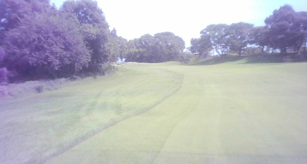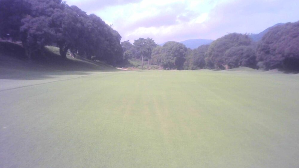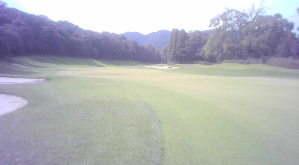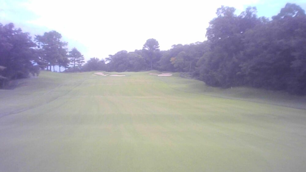 戦略性のあるやや右ドッグレッグのパー4。左右にフェアウェイバンカーがあるためティーショットがキーポイントとなる。グリーン左手前には池。セカンドは見た目以上に上っているため少し大き目のクラブで。