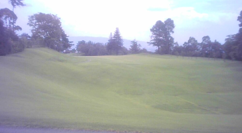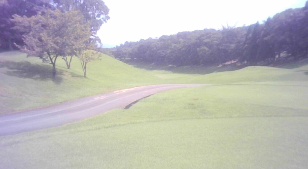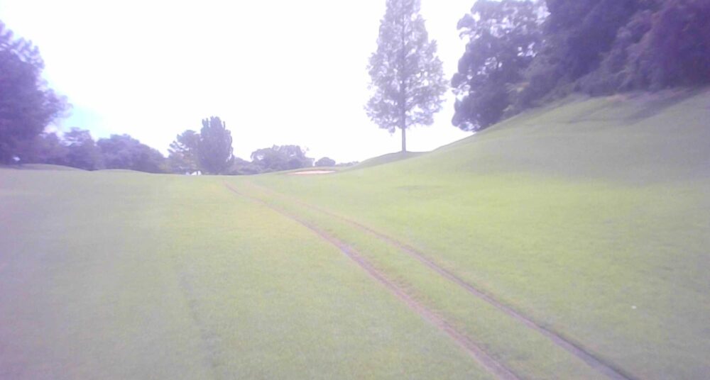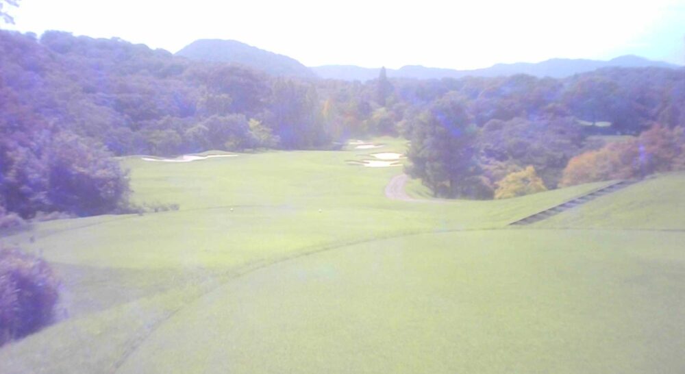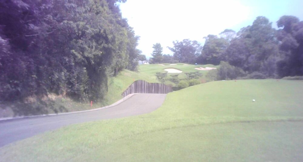 距離のあるパー4。ティーショットは右管理道方向が狙い目。左の谷へ落ちた場合は無理をせずフェアウェイに戻した方がよい。フェアウェイ・グリーンともに左に傾斜している。☆左はかなり広いですが、グリーン狙いは林越えになります。