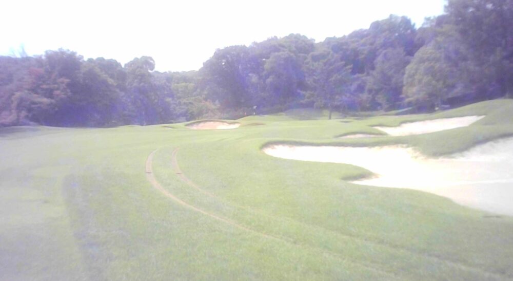 距離の短いストレートなパー5。グリーン左手前30ヤード付近のフェアウェイバンカーを避ける事。2段グリーンのためピン位置に注意。☆右のバンカー右直ぐOBライン。