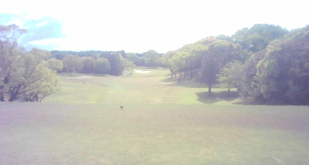 第1打は左フェアウェイを狙って。比較的距離が長いミドルホールです。