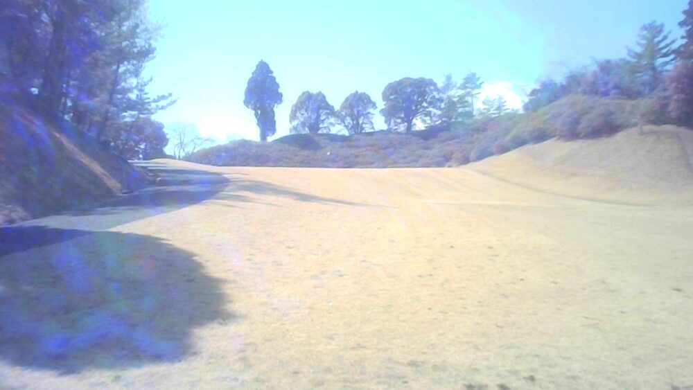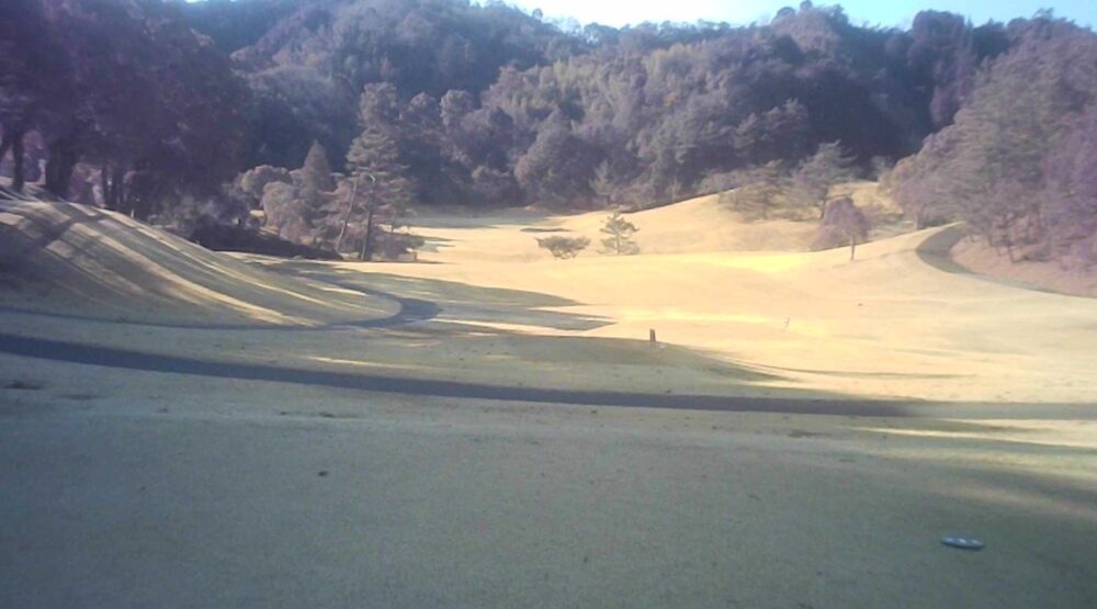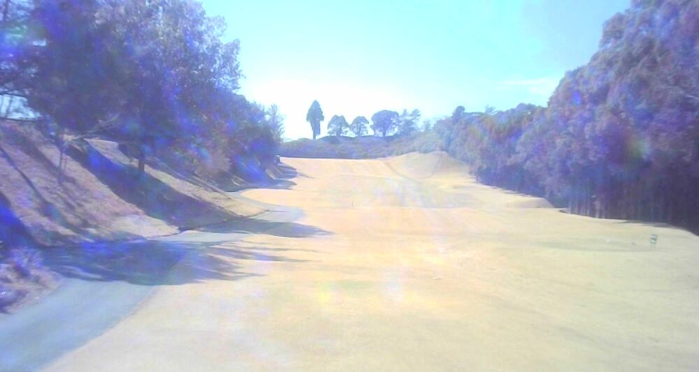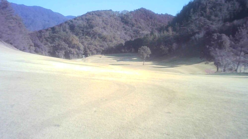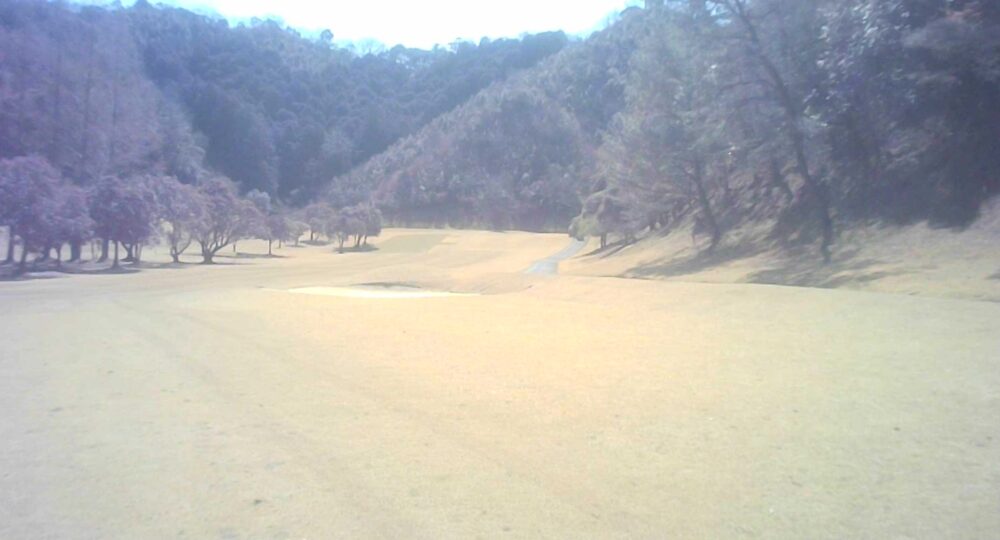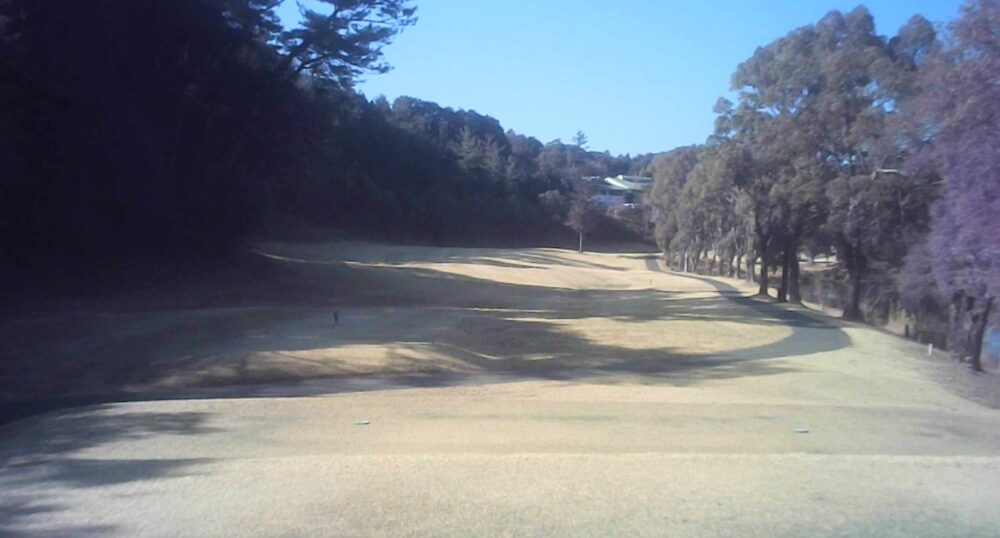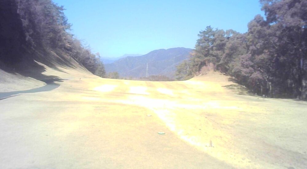 打ち上げミドルでティショットは飛距離を稼ぎたい。左の谷はボギー谷。セカンドは大きめに打つのがよい。☆セカンドはかなり打ち上げています。