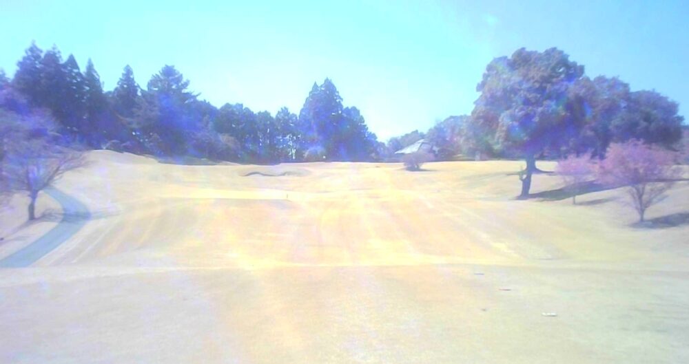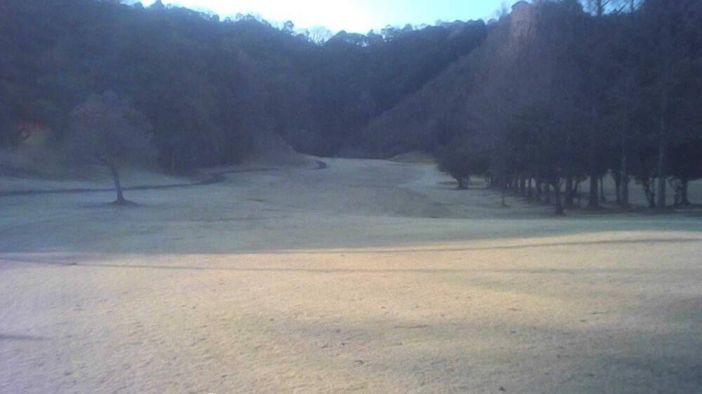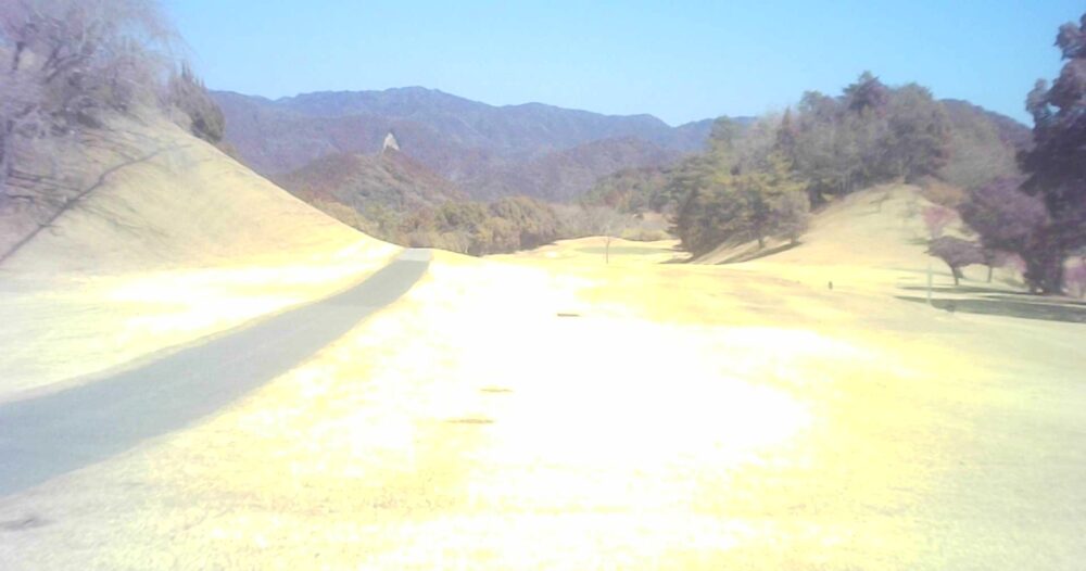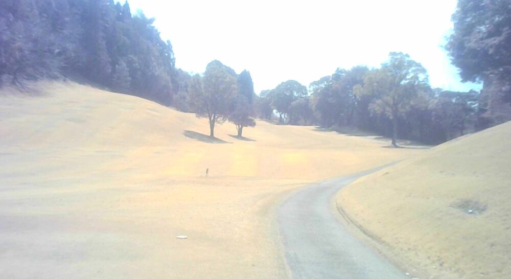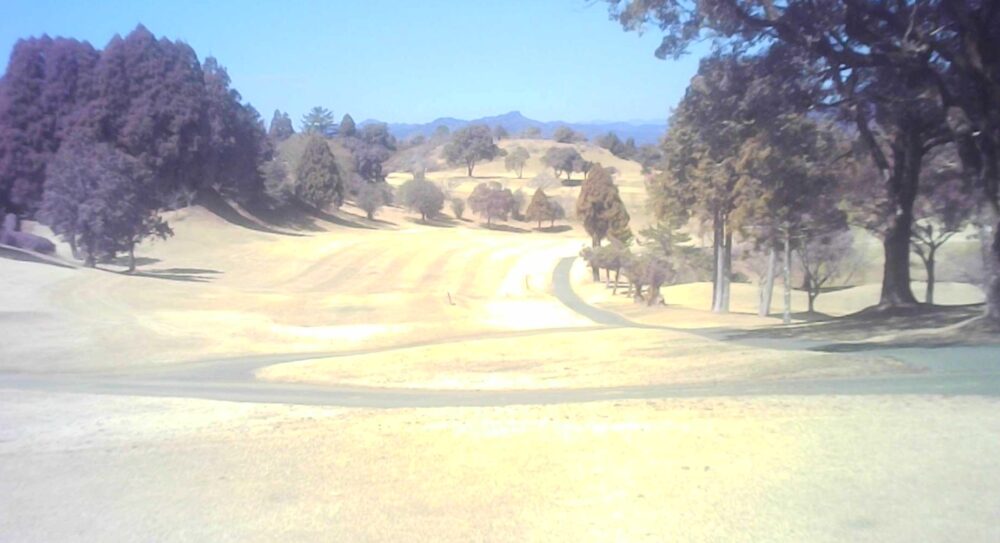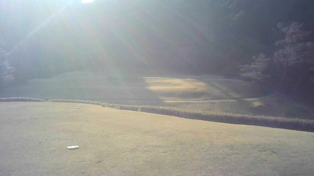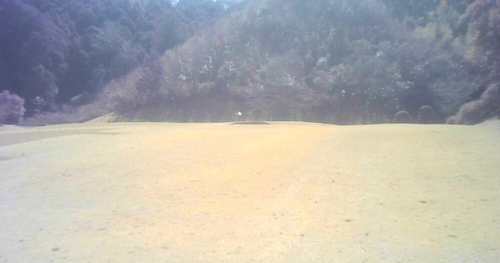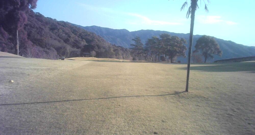 セカンドが打ち下ろしの真っ直ぐなホール。ティショットは斜面手前の平坦な場所へ。グリーンはアンジュレーションに富む。☆カート見えなくなってもティショット打ち込み注意。グリーンの奥に茶畑。